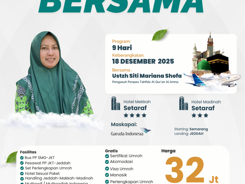 Umroh GOLD - 9 Hari 18 Desember 2025 Bersama Ustazah Siti Mariana S