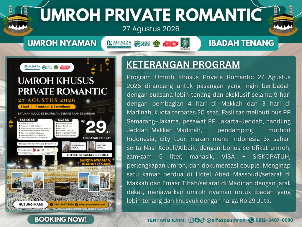 UMROH PRIVATE ROMANTIC BULAN AGUSTUS 9 HARI